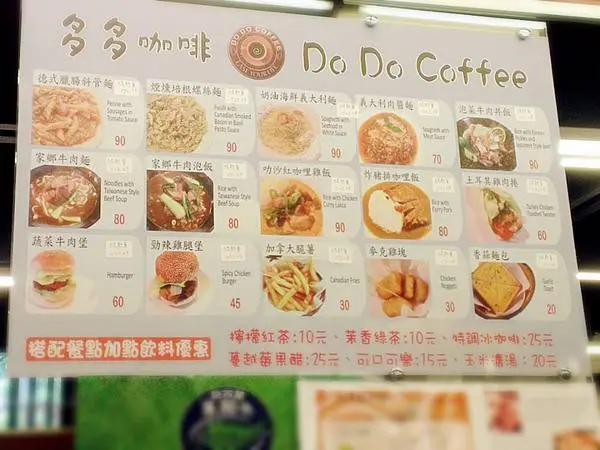 潛入交大當交大生來去學餐吃午餐喽交大內的餐廳好多家喔(不像我學校只有一兩家= =) 眾多家之中選擇有人推薦的多多咖啡買這家店的學生好多喔(下課時間還要排隊等一下下) 我點了一份炸豬排咖哩飯 $80加上一杯飲料可以折5元 分量瞞大份的不過豬排吃起來不酥脆(不知是否跟淋上咖哩醬有關)肉味有種醃製過的那種味(我不太喜歡)吃起來有點鹹至於咖哩醬還可以 吃完嘴裡會留下淡淡辣味 德式臘腸斜管麵 $90男友點的 麵的份量也很夠醬汁(紅醬)有些微酸 至於臘腸真的有點太少了 提供給交大的學生們一項選擇 : )…查看更多