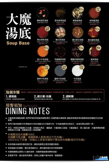 五月份母親節即將到來!大家找好母親節餐廳沒?全台最強肉品火鍋專家,大魔大滿足鍋物,中壢、新竹、板橋、台中四家分店門市一同推出「寵愛媽咪四人孝親套餐」(5500元),包含兩大尾波士頓龍蝦/雪蟹/日本頂級和牛大肉盤等超豐盛海陸雙拼!為了感謝辛苦的爸爸媽媽,獨家加碼贈送松阪肉蛋糕,整個誠意十足心意滿點,尤其這次因應肺炎疫情,大魔鍋物全面提供酒精消毒測量體溫等把關,讓饕客們入門就能感到安心,還有火鍋湯頭特別新推出日式咖哩鍋,滿滿薑黃增加抵抗力,據說印度人就是吃咖哩才能幾乎沒有病例),全家一起聚餐吃起來,幫媽媽補身補健康!這次則是來到,大魔大滿足鍋物新竹遠百店,店面位置就在新竹大遠百旁的收費停車場對面,若是母親節開車帶著媽媽爸爸一起家族聚餐慶祝非常方便,吃飽後還可步行到百貨公司買份母親節禮物送給長輩!防疫守護完成後,服務人員帶位入內,大魔新竹店的裝潢風格跟米粒上回去中壢店相似,都是帶點美式慵懶氛圍,特別喜歡牆面擺上各種文青綠植,每桌帶點間距,用餐客人舒適寬敞不怕受打擾!特別選定平日午餐時段到來,不少饕客開心享用鍋物!最受歡迎的獨享吧台靠窗區,明亮几淨的陽光灑落,為寒冷冬日帶來暖呼呼的日光浴!因為大魔鍋物主打肉品專家,就算一個人、情侶約會慶生或是全家聚餐想要享用大肉盤火鍋也沒問題!分享一二樓用餐區,準備來點餐吃飯囉!翻開菜單立馬出現選擇恐懼症,光是火鍋湯底就有這麼多選項!還有我們最愛的牛肉,品種與部位多到眼花撩亂!飲品自助區店內用餐皆有包含汽水飲料無限暢飲,冰箱內擺放大小朋友最愛的可樂雪碧,另外還有雀巢系列飲品和星巴克咖啡!加上大胃先生喜歡的可爾必思乳酸飲和可爾必思冰沙,通通無限暢飲喝到飽!如果不喜歡喝太甜,新增添的悅氏無糖綠茶,讓養生健康的饕客也有新選擇!飲品部分則用精緻的銅杯盛裝,優美的裝潢與餐具也是讓我們對這大大加分的好印象!帶著另一半或家人好友聚餐非常有面子!火鍋沾醬區吃火鍋最重要的沾醬,大魔鍋物完全不馬虎,醬料區擺上五顏六色醬料看起來好澎派!上回吃過就愛上這五款醬料:山葵美乃滋、五味醬、柚子醬油、橙醋醬,沾海鮮或肉品都好好吃!初鹿牧場牛奶湯底全台火鍋餐廳比比皆是,靈魂湯底絕對是抓住饕客味蕾的重要關鍵!大魔大滿足鍋物特別研發多款湯頭,經過饕客舌頭汰換下,最後選出最受歡迎的十多種湯頭,上次喝過原味蔬菜湯和麻辣牛奶鍋,這次品嚐四人套餐,特別選擇四款不同湯頭!人氣第一名的起司牛奶鍋,店內皆使用台東初鹿牧場牛奶加上起司片,充滿濃醇香氣!新口味-日式咖哩湯底另一鍋黃金湯特別因應肺炎防疫推出的咖哩鍋,大家有看新聞就知道印度人疫情很少,據說就是天天吃咖哩(內含薑黃素)增強免疫抵抗力關係!近期大魔鍋物推出後,點閱率超高!!!裡面加入洋蔥增添鮮甜,帶點微辣也會讓身體發熱冒汗非常舒服推薦藥膳何首烏湯底/茄汁牛奶湯底另外這兩款口味則是推薦給長輩的養生組合!希望媽媽頭髮烏黑亮麗越喝越年輕的何首烏湯底帶點藥膳香氣,搭配酸甜奶香的番茄牛奶鍋,喝起來清爽無負擔,非常涮嘴!綜合菜盤套餐附含的綜合菜盤份量也很澎派!高麗菜加上綜合菇,纖維質豐富!其中水蓮特別綁成一捆,不怕下鍋散開!若是內行饕客一定要吃這裡的大甲芋頭和芋頭丸,嚴選芋頭心製作!口感綿密鬆軟,好吃到想讓我們想要續盤!不吃菜盤!那就換肉換海鮮不喜歡吃菜菜的饕客也沒關係!綜合菜盤可更換台灣梅花豬/美國安格斯嫩肩里肌牛/日本廣島牡蠣/鮮蝦/蛤蠣(任選1),由於這次點選四人孝親套餐有肉有蝦,決定另外三份菜盤換成肉盤和蛤蠣,現切的台灣梅花豬/美國安格斯嫩肩里肌牛,還有肥美的蛤蠣飽滿鮮甜,推薦肉控或海鮮控更換!附餐則有白飯/關廟麵/王子麵/寬粉條/韓式拉麵/日式拉麵/日式烏龍麵/蛋(8選4),我們分別選了白飯、烏龍麵、王子麵、韓式拉麵!熱呼呼白飯配著肉品一起大口享受好滿足!烏龍麵則是彈牙滑溜,拌上醬料區的柚子醬油好像在吃日式冷麵,相當涮嘴!4~5月限定/寵愛媽咪4人孝親套餐(原價6800元/特價5500元)海鮮船:頂級龍蝦*2隻/雪蟹*1隻/阿根廷天使紅蝦*8隻/根島生態蝦*8隻/野生海大蝦*8隻/南美甜白蝦*8隻/日本生食級大干貝*4顆/九洲鮑魚*4顆/頂級鱘龍魚*150g/軟絲*1隻終於這次重頭戲登場!歡慶母親節的4人孝親套餐果然跟上回吃到的雙人套餐不一樣氣勢!光是海鮮船就讓我們大為驚呼,看看整艘船載滿海鮮,像是煙火般放射的肥美大蝦和龍蝦,媽媽應該能感受子女孝心滿點!吃過大魔鍋物的龍蝦,應該都會發現他們家口感吃起來特別彈牙鮮甜,肉質不會粉粉爛爛!全是因為選用高壓急凍龍蝦,甜度完全不輸活龍蝦!好吃到令人無言的頂級美味,最適合好好犒賞慶祝另一半!尤其這爆漿蝦膏有夠濃郁,精華融於湯頭,海味滿點!母親節套餐加碼:雪蟹這次母親節套餐特別加碼雪蟹,外觀長得好像帝王蟹和松葉蟹的綜合體,也是近年海鮮市場特別受到推薦的蟹類,肉質飽滿細緻,口感不輸帝王蟹品質!蝦控最愛的蝦蝦大軍,有阿根廷天使紅蝦/根島生態蝦/野生海大蝦/南美甜白蝦,整齊擺放就像海中軍艦的大砲,百蝦齊放宛如煙火般盛開,媽媽爸爸保證看到心花怒放,而且海鮮盤熱量低,對長輩較無負擔感!鮮豔火紅的天使紅蝦煮熟記得幫媽咪撥好蝦殼,好好孝親一番!第王帝后滋補聖品-頂級鱘