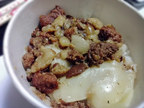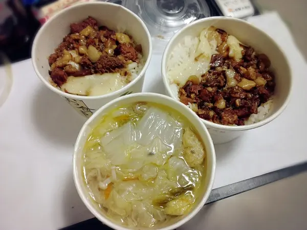 今日晚餐簡單吃不簡單的魯肉飯(聽說~~這家魯肉飯很有名的好吃...今天第一次來) 一到用餐時間發現很多人在等候店內內用空間蠻小的餐點種類在上頭一目了然 一共外帶了一大一小魯肉飯及一份魯白菜 魯肉飯 小$35 大$40這家的魯肉是很大塊,肥瘦肉都有對於跟我一樣不敢吃肥肉的人~~這家你一定敢吃!!!其實吃不出肥肉的油膩~因為瘦肉真的比一般外面吃到的還大塊底下的飯因為淋上了滿滿的魯肉醬汁,真的吃完一碗超滿足的另外另外我也好喜歡這家搭配筍乾(很滑順~也很搭魯肉飯 魯白菜 $35看似有些油膩~不過吃起來感覺還好白菜魯的很軟爛好入口,還有些許蝦米 金針菇 麵筋在裏頭最後還能當湯喝下~冬天來上這碗暖暖的湯品真是便宜又溫暖 第一次吃到這家的~~真的很好吃也有飽足感真羨慕清大的學生~~出了校門就有好吃的魯肉飯歡迎光臨yaya的痞客:http://yayayeh99.pixnet.net/blog 榮茂魯肉飯電話:03-535-2181地址: 新竹市東區建新路7號…查看更多