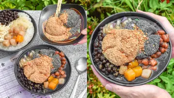 苗栗燒麻糬、剉冰推薦!位在苗栗頭份的瑞盛客家米食,是在地傳承到了第三代的傳統客家小吃,為瑞盛客家米食菜單除了夏天的燒冷冰、燒麻糬、黑糖剉冰以外,冬天還有包餡麻糬、手工湯圓、甜湯等選擇,而白白胖胖的燒麻糬結合黑糖剉冰的燒冷冰,更是當地人夏天必吃的下午茶甜點,說到苗栗客家米食推薦,他們肯定家榜上有名!不過生意超好、內用位子不多,建議外帶比較快速,另外也有外送的服務!瑞盛客家米食停車交通位置鄰近竹南運動公園、尚順育樂世界及竹南車站的瑞盛客家米食,就座落於中央路與八德一路的交叉口,騎機車或開車來這買好吃的燒麻糬、燒冷冰、黑糖剉冰當下午茶點心,有路邊停車格可停放。瑞盛客家米食夏天與冬天賣的品項不一樣,炎炎夏日賣的是這一碗碗的消暑黑糖剉冰,剉冰的配料有九種讓大家挑選,都是當天新鮮現煮。白白胖胖的燒麻糬則在一旁滾動著,光看就覺得療癒又美味!除了冰品,櫃台前還有古早味酸梅湯及仙草茶可購買。若不清楚菜單上的品項,也有照片讓大家參考。瑞盛客家米食外送服務頭份市區、竹南市區滿250元。竹南科學園區、市區以外及團購訂單滿$300~$500元請先來電洽詢。電話:0911811120Line:duke19921120(ID搜尋)瑞盛客家米食菜單價格瑞盛客家米食夏日限定菜單有燒冷冰、米苔目冰、粉條冰、綜合剉冰、燒麻糬、古早味酸梅湯、仙草茶的選擇,價位落在$25~$75元之間的銅板價,配料有綠豆、紅豆、大豆、仙草、黑珍珠、QQ、小珍珠、芋圓、硬花生這九種。燒麻糬(花生+芝麻) $30來到瑞盛客家米食,幾乎每個人都會點一份燒麻糬,麻糬可以選擇單一口味,也可以選擇綜合口味,第一次來,我們建議點綜合口味,熱騰騰的麻糬起鍋後,就會裹上滿滿的花生粉或是芝麻粉,熱熱吃的麻糬,口感軟而不爛,軟綿綿的跟雲朵一樣迷人!這兩種口味都好吃,雖然帶點甜度,但甜而不膩,讓人口接著一口。花生口味的燒麻糬還看得到花生顆粒,吃起來口感更豐富之外,香氣也更加濃郁。燒冷冰(任選3種配料)+綜合麻糬 $75這碗燒冷冰就是招牌必點!黑糖剉冰會附上兩片熱呼呼的燒麻糬,麻糬不管是單點還是搭配冰品都超讚,麻糬即使遇到冰也不會變硬,而是更Q彈、更有口感,怪不得每一桌都會點!燒冷冰可以任選三種配料,我們選擇了大豆、芋圓、黑珍珠、QQ這四種,所以第四種是加價的,大豆香甜可口,搭配輕甜不膩口的黑糖剉冰,甜度剛剛好。彈牙的芋圓吃得到芋頭和地瓜的天然香氣。QQ和黑珍珠則是很有咬勁。綜合剉冰(任選4種配料) $65綜合剉冰可以任選四種配料,我們選了粉條、米苔目、黑珍珠、芋圓,這碗份量也是不少,瑞盛客家米食的黑糖剉冰甜度不高,搭配配料吃起來都滿剛好的,如果喜歡吃甜一點,也可以請店家調整。白色條狀的是米苔目,米苔目、粉條、麻糬是店家自己製作,而且都不添加防腐劑~米苔目口感QQ軟軟的,非常滑嫩。粉條口感則是QQ脆脆的,比較有咬勁。瑞盛客家米食的古早味黑糖剉冰一點也不甜膩,喜歡吃甜一點還可以調整,而配料都是每天現煮,必吃的燒麻糬軟Q香甜,搭配剉冰真的好吃,喜歡吃剉冰、吃燒麻糬的朋友要趕快,不然換季之後就要在等明年才吃得到冰了!…查看更多