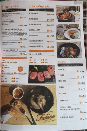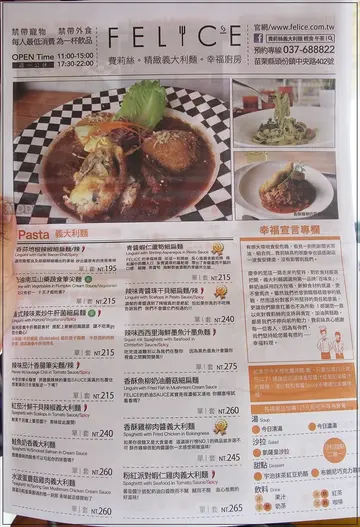 原文網址:http://imfood20130530.pixnet.net/blog/post/191279089店家資訊『費莉絲FELICE』營業時間:週二~週日,AM11:00~PM15:00;PM17:30~PM22:00地址:苗栗縣頭份鎮中央路402號電話:(037)688822『食尚玩家』是噗一家子都喜歡看的節目某天噗爸噗媽在當Couch Potato時~意外看到正在介紹『費莉絲FELICE』不知道是哈孝遠的關係(胖的人介紹美食,總是看起來比較有說服力!)還是食物真的吸引人噗媽對『費莉絲FELICE』竟然一直念念不忘一直都想想趁北上時順路一窺究竟沒想到...第一次打訂不到位下個月再打又遇到店家重新裝潢(瞎密!)這一等又一個月了(我們一個月北上一次)最後靠著不放棄的求吃意志!終於還是吃到囉~(俗話說天下無難事,只怕有心人!)(沒想到有天噗家的部落格竟然會這麼勵志,這麼積極,這是料想不到的阿~菸) ▼重新裝潢後的『費莉絲FELICE』有提供停車場了(肚子餓已經夠美送,還要找車位就更阿雜,而且店家超貼心知道巴豆妖會走不動,所以停車場就在旁邊~讚喔!) ▼店門口一邊是小水池,另一邊是PIZZA窯烤爐,光路過看到這個設備很難不走進來,也很難不點PIZZA(巴特!我們還真的沒點耶~XD),跟老闆打勾勾~下次一定來點!(誰理你) ▼『費莉絲FELICE』的大門及營業時間 ▼聖誕節將至,所以整間店都布置得很有聖誕氣氛(聰明如你應該有發現哪裡怪怪的吼~~年都過了怎麼還在聖誕節,拍謝這篇拖太久了) ▼店內裝潢一樣是噗媽最愛的木質調,一樓空間很明亮,但座位區不多,約莫能容納10多人而已 ▼牆上的是老闆的廚藝證明,網路上說老闆可是有藍帶廚藝學校證書(好厲害,不像我只知道藍帶豬排……掩面) ▼通往二樓的樓梯間裝潢也不馬虎,一整面的文化石和上方的吊燈,走的是簡單精緻的風格 ▼二樓空間相對就大多了,也提供雜誌供借閱(還真大疊啊~) ▼『費莉絲FELICE』有多種不同座位,半開放式包廂區是多人聚餐的好選擇 ▼一般座位區跟和室區,其實我們最想坐的是和室區,除了因為採光好外,還可以讓阿噗稍微走動,但無奈當天二樓有人求婚,所以二樓這天未開放 ▼另一邊的沙發區環境也好棒,不同色調的桌椅擺在一起卻很搭,這樣的環境非常適合跟幾個人妻一起數落老公跟婆婆(喂!!按捏乾丟~) ▼飲料吧台區的旁邊其實是『費莉絲FELICE』的靈魂人物,超大塊的起司唷,這對起司控來說超加分的!!! ▼連洗手間的牆面設計都很有創意 ▼是尿布檯耶~~當媽的看到尿布檯都會有點興奮加安心,出門在外常都因為沒地方換尿布而覺得很麻煩,這點真是太~~~貼心了! ▼菜單設計也很特別,是用報紙方式呈現,餐點很多樣化,有義大利麵、Pizza、燉飯、排餐等……另外,只要加35元就可以加焗烤,加125元就可以升級成套餐~~套餐有湯、甜點、沙拉和飲品,但沙拉跟甜點只能二選一喔! ▼這標語分明就是在告訴你來『費莉絲FELICE』就是要點青醬 ▼放這張完全只是媽媽覺得阿噗好帥(噗爸在一旁心理os:這位媽媽病的不輕) ▼『洋蔥湯跟蘑菇濃湯』今天噗一家肚子都好餓,所以直接升級兩個套餐,湯品洋蔥湯跟蘑菇濃湯就各點一個,喝一口後發現湯是溫的(噗媽對不夠燙的湯跟咖啡很扣分,這就跟點酥皮濃湯,但看到上面酥皮又垂又垮一樣讓人沮喪),兩者相較之下我們都比較愛蘑菇濃湯,沾著麵包棍吃又是不一樣的感覺。 ▼蘑菇濃湯還蠻對阿噗胃的 ▼『凱薩皇沙拉』清脆的蘿蔓生菜配上自製凱薩醬,很好吃耶 ▼『帕達諾起司肉腸香料燉飯』285元米飯軟硬度拿捏得很好,奶香味很濃,因為有加上現刨的帕達諾起司,所以小小牽絲,會讓人一口接一口,整體味道很好,噗媽非常推薦 ▼主角燉飯已經被這背後靈奪去光彩了(戲精噗上身) ▼『青醬蝦仁蘆筍細扁麵』215元這道餐點也是人氣之一,前面介紹過一把50元的青醬只用在一盤義大利麵上,所以能不點嗎?!(握拳!)裡頭的蝦子真的蠻多的,青醬也很濃郁,每個麵條都吸上醬汁,麵條軟硬也控制的很好,稍稍可惜的是當天調味稍鹹了點,但還是很好吃! ▼『宇治抹茶紅豆奶酪』這是店員說阿噗好可愛特別贈送的,結果造福了媽媽(養兒千日用在一時阿~)冰淇淋抹茶味好濃又帶點淡淡的奶味,白玉湯圓吃起來甜甜QQ的,下面還有抹茶奶酪,滑順的口感跟Q彈的湯圓好搭,這道甜點表現超出色!噗媽跟阿噗一直在搶食(費莉絲必吃!) ▼『布朗尼巧克力慕斯』脆脆的餅乾讓苦甜的巧克力布朗尼增添不同口感,也讓味道更有層次,沒有一般巧克力的死甜,上層的玫瑰幕斯又帶出另一種風味,兩道甜點都非常棒!! ▼附餐飲料『熱紅茶』 ▼『冰滴咖啡』 是噗爸補差價68元換的飲品,噗爸最近是黑咖啡控,到哪都要點上一杯,自從上次去朋友的咖啡店喝過『冰滴咖啡』後,就對它念念不忘,享用『費莉絲FELICE』的『冰滴咖啡』是咖啡冰磚與冰滴咖啡的結合,可以品嚐到單純果酸味,添加點附的牛奶,也有冰拿鐵的口感~ ▼整個『費莉絲FELICE』都是我的遊戲間的概念 【整體評分】等一杯咖啡的噗爸(噗媽:笑A) ★★★覺得兒子比主餐吸引人的噗媽(噗爸:笑A) ★★★★一直CUE爸爸拍照~~的阿噗 ★★★★★整體評價:這一天來到『費莉絲FELICE』吃飯算是一個特別的體驗遇到有人要求婚的場景,噗爸噗媽也不免緊張起來(緊張啥!你們已經是加ed了~)噗爸上樓拍照...都要跟店員打暗號般的確認可不可以上去然後有人進來或是有人下來的,噗爸噗媽都會竊竊私語的說:是她嗎?是他嗎?求完了嗎?兩個人整個很融入其中~畢竟這樣的
