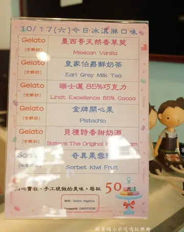 Gelato Angelica 義式冰淇淋位於竹北科大一路上, 附近地標是全家便利店, 大家經過時注意一下他們的藍色LOGO囉~ 店內是是比較素雅簡約風裝潢, 有小桌子或吧檯提供給客人內用 他們的冰淇淋可以先試吃, 大家可以試過口味及看過賣相再買, 這樣才能吃得到心目中最愛冰淇淋 他們研發出來的口味有很多種, 不過每天約6種口味提供, 看當天師傅心情及靈感吧 看到牆壁上多種口味, 有不少吸引到小米想試看看的, 如椰子/粟子/西瓜/芒果/黑芝麻/香蕉等等....還真的不少呢XD 製作冰淇淋機器就放在店面可看到地方, 客人們可以看到師傅如何製作冰淇淋, 在食用上安心多了~ 今天賣的6種口味~ 每杯50元, 如果內用的話還可以一杯選用雙色, 就不用煩惱想吃這種又想吃那種的煩惱了 對了, 店內還有提供WIFI小貼心服務! 店家一點都不小器, 裝冰淇淋是會壓緊緊的將杯子塞滿呢 金牌開心果, 開心果口味冰淇淋對小米來說還是第一次嚐試到 那何謂義式冰淇淋? 義式與美式冰淇淋其實是差別於乳脂肪(奶油)含量, 義式是規定於8%以下乳脂肪含量, 美式多為1X%或更多, 所以義式冰淇淋熱量相對來得是比較低. 而義式冰淇淋有三種不同屬性, 分別是 Gelato(牛奶為基底, 不加水的牛奶製作)、Sorbet(水果為基底, 乳脂肪0%)及 Sherbet(介與 Gelato及Sorbet之間乳脂肪含量). 聽完小米解說後大家對義式冰淇淋有初步了解吧 這家冰淇淋店是以Gelato命名, 相信應該大部分以牛奶口味為主, 不過看了一下好像也有小部分 Sorbet~ 這口味小米蠻喜歡的, 冰淇淋本身就有開心果果實香氣及甜味, 因為全程以牛奶不加水製作, 所以牛奶很濃郁及有黏稠口感, 而沒有過多乳脂肪(奶油), 吃起來也不會太膩, 加上有碎果仁脆脆口感, 這口味可以說是店家鎮店之寶XD 難怪有金牌兩個字了, 哈哈哈.... 另外聽店家說一杯不會到200大卡熱量, 很適合愛吃冰淇淋又怕變胖的朋友 另外友人點了雙口味(皇家伯爵鮮奶茶/瑞士蓮85%巧克力), 就像在"吃"奶茶一樣, 有伯爵香氣奶茶口味, 不會太甜且帶到茶味~ 巧克力帶著濃濃巧克力苦甜特色, 喜歡吃巧克力的朋友可以試看看唷 不誇張冰淇淋黏稠到可以"牽絲", 代表著真材實料呢~ 小米被拍到張大嘴巴吃冰淇淋 >< 不過說實在好吃才張這麼大的啦 最後意猶未盡兩人分吃再加點(金牌開心果/貝禮詩香甜奶酒), 奶酒就是牛奶口味中有淡淡酒香, 這對小米來說口味是還好, 沒有很特別喜歡XD 還是金牌開心果最愛小米寵愛 要離開前看到師傅剛做完奇異果雪酩, 小米要了一匙來試吃, 就像在吃奇異果一樣XD 有奇異果籽沙沙的感覺, 口味上是比較偏酸一些, 比較適合愛吃酸V口味的女士們 後記:Gelato Angelica義式冰淇淋口味眾多, 可能每次來都有不同的驚喜 而冰淇淋本身用料很實在, 金牌開心果口味獨特讓小米有不少驚艷, 加上熱量及價格不高, 喜歡吃冰淇淋的朋友可以參考看看唷 …查看更多