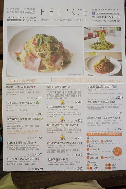 。苗栗食記。FELICE‧費莉絲‧幸福義大利麵‧輕食‧午茶