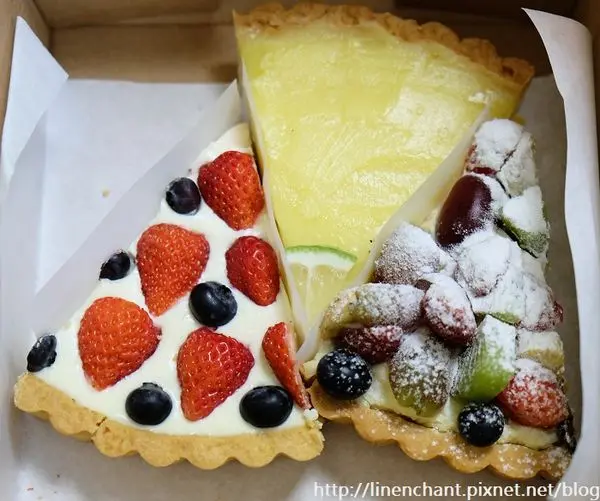 上頭的水果甜度都很OK,我喜歡它派皮酥香的口感~而內餡吃起來很清爽配著水果吃好美味!!!