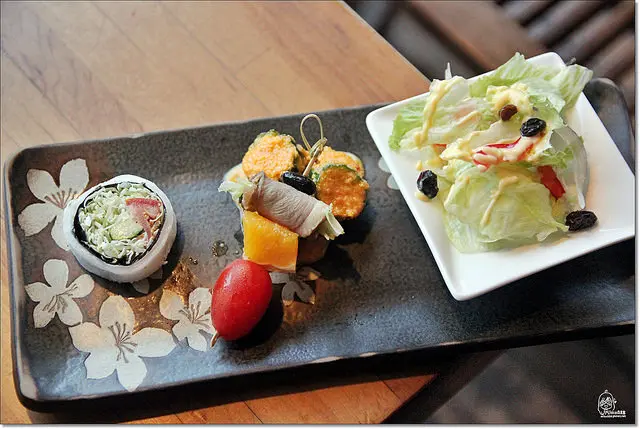 生菜沙拉與櫻桃鴨水果、蔬菜壽司等...好清爽開胃。