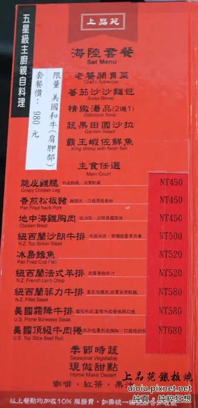 菜單非常簡單,餐點都是套餐式,450~980元不等,低消100元,