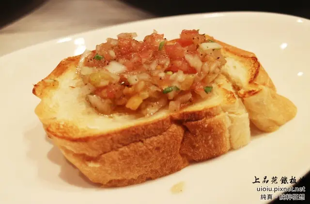 麵包會先在鐵板上預熱,再添上番茄沙沙醬,這個只要醬好吃,我就覺得好吃,