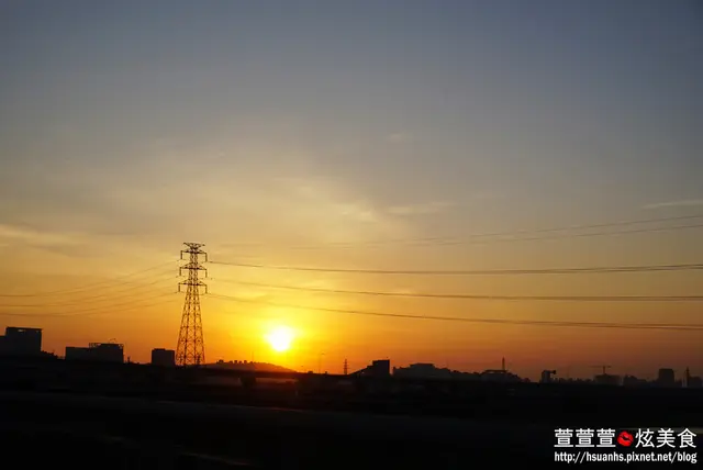 到新竹時剛好傍晚,車開在橋上撞見夕陽西下的美景