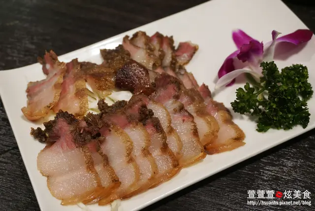味道就像是煙燻臘肉的感覺,旁邊的醬料是醋+蒜頭