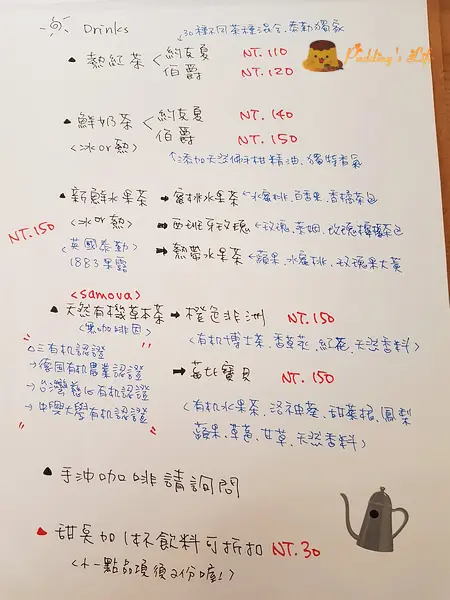 手寫菜單上有餐點詳細介紹