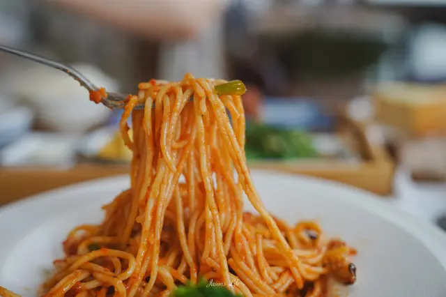 海鮮茄汁義大利麵,雖然菜單有標記辣椒