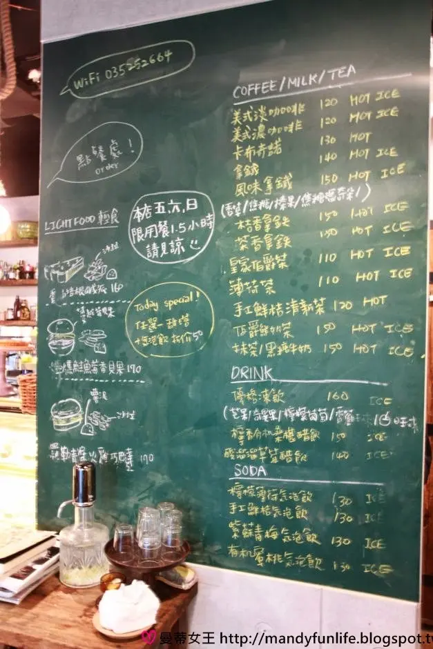 「一百種味道」沒有紙本的菜單,飲料的品項就寫在正對大門的這塊大黑板上,仔細瞧瞧,今日特價組合也會寫在這黑板上呦!Today special: 任選一甜塔 + 氣泡飲 折價$50