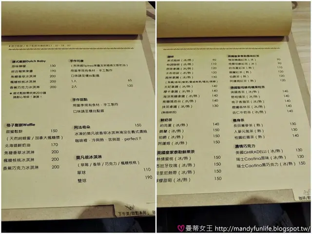 這裡也提供鬆餅、甜點類的下午茶點心,還有多款飲品可以選擇。