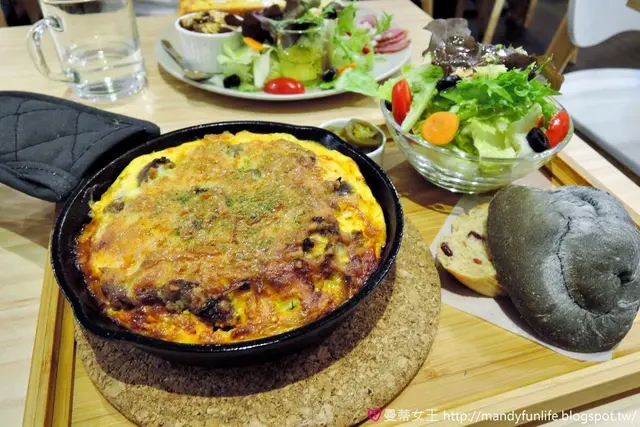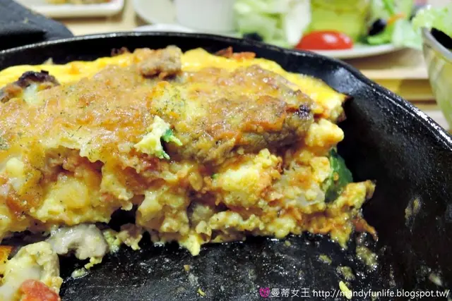 「紅醬牛肉義式烘蛋」(加價$90升級套餐:沙拉+飲料),一上桌時香氣撲鼻。