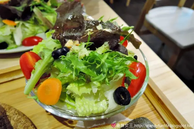 升級套餐的「生菜沙拉」,份量不少喔~ 而且它的生菜非常新鮮,淋上店家自製的油醋醬,很不錯!