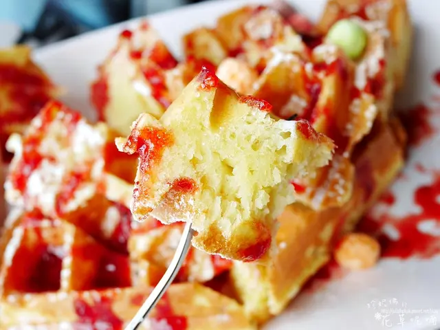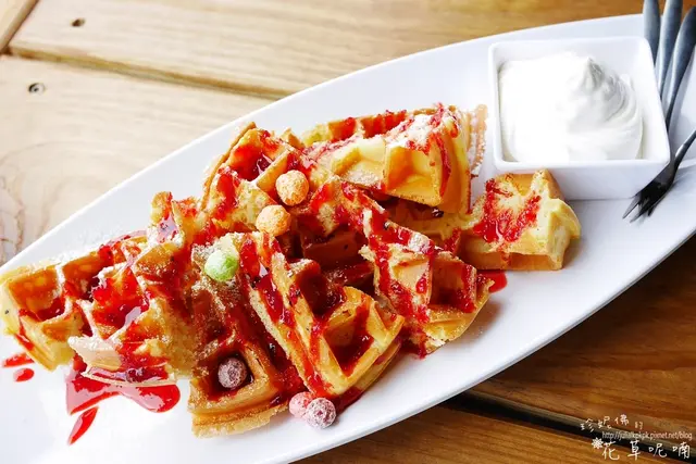 鬆餅上桌的時候熱熱的,口感鬆軟,有點出乎我們意料還不錯