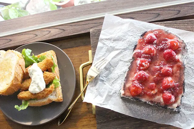 有草莓乳酪山形土司和塔塔魚三明治做伴,