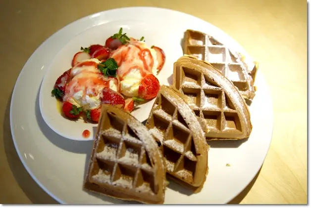 不過這裡鬆餅的口感與「米朗琪」、「詩特莉」或者也可以說是與一般的鬆餅都不同,它中間並非軟Q的口感,從裡到外全都是酥脆地,所以整塊鬆餅拿起來的重量是非常"輕"的,而我個人是覺得吃起來有股《小林煎餅》的滋味,且愈咀嚼愈香~重點吃了還不會很佔胃的空間。