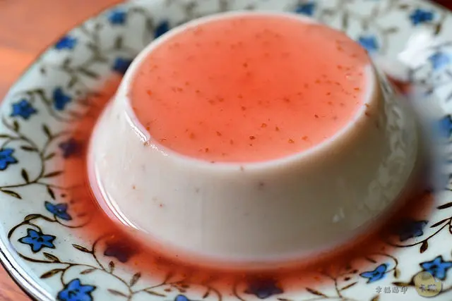 無論是醬料或奶酪布丁本身都可以見到草莓籽及果肉,酸酸甜甜的自然草莓淡香很清爽,吃完不會覺得太甜想漱口。