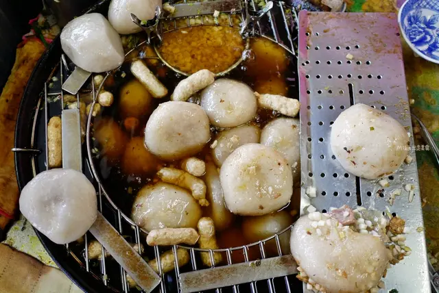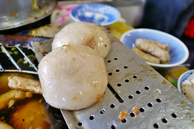 就像苗栗市原來把甜不辣、黑輪都叫做熱狗?這個好謎喔!?還有這裡的人熱愛韭菜醬油+辣椒,不管吃什麼都加這一味,就連這家超巨肉圓也不加米漿等醬料,就真的只加韭菜醬油辣椒,我認真說確實很便宜而且超大一顆,更是在地排隊名店,但我真的吃不懂啦。