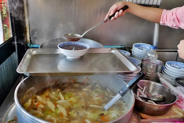 老闆手超忙一直在撈肉圓跟熱狗,生意有夠好。