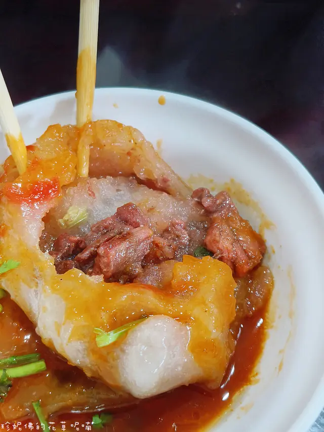 ▲紅糟肉圓一份兩顆,醬汁不是很辣,感覺甜味居多