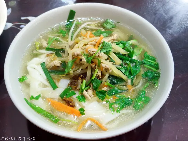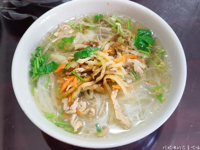 ▲米粉湯吃起來很古早味,上面放了很夠味的榨菜炒肉絲