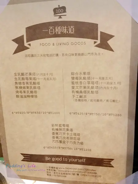 【食記-新竹】大遠百附近巷弄裡的美味甜點《一百種味道》水果塔/鹹派/咖啡