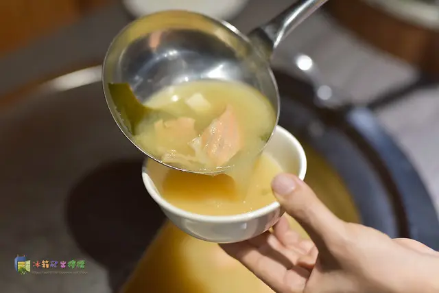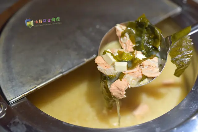 ▲雖說是免費提供的味噌湯,但裡頭的用料可一點都不馬虎,裏頭有鮭魚肉、豆腐、海帶芽...等配料。