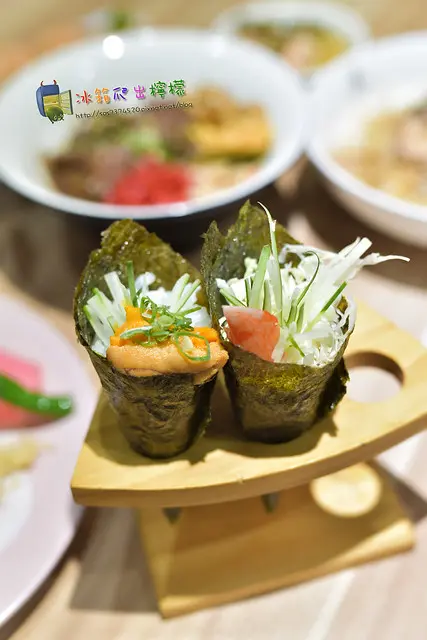 黃澄澄的海膽,口感細滑味道鮮美無腥,搭上手卷裏頭醋飯和爽口黃瓜絲,滋味真的很棒