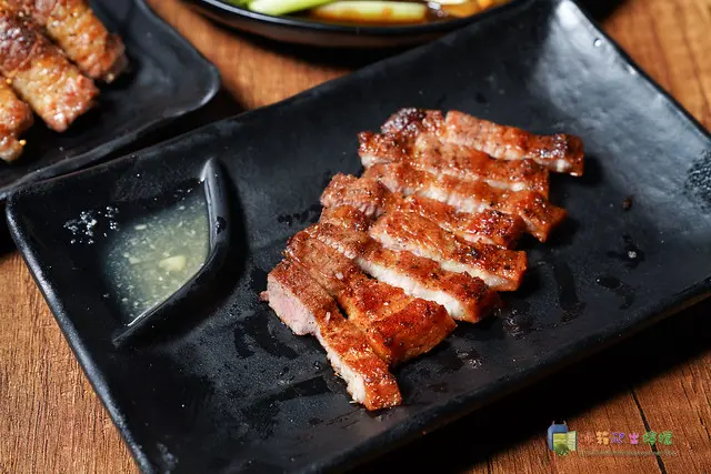這裡的烤鹹豬肉真的很厲害,即便是放冷了,表面的口感依然呈現酥脆,而且肥瘦適中,醃料也不會過鹹,無論是單吃或搭配店家特調的蒜醋醬都很合適,只不過蒜醋醬個人覺得風味偏甜,但忠哥反而很喜歡這蒜醋醬的味道