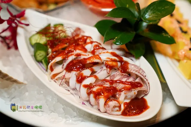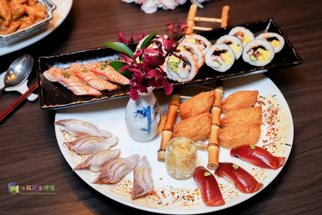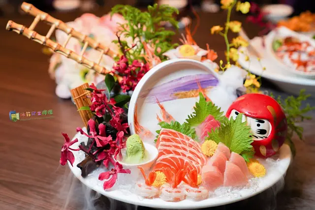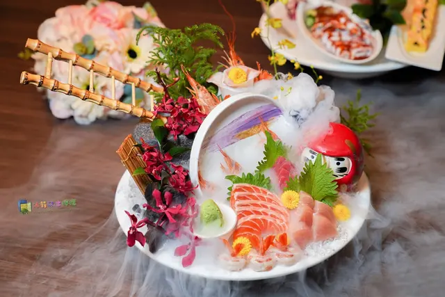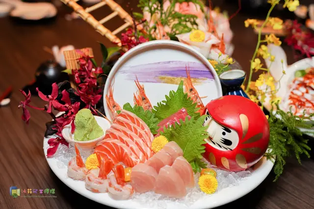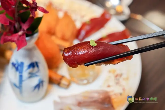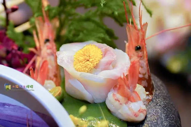 ▲這海鱺魚刺身也太融入擺盤了吧!!師傅巧奪天工將海鱺魚片拼接成一朵玫瑰花,一不小心就讓大家差點遺漏了它