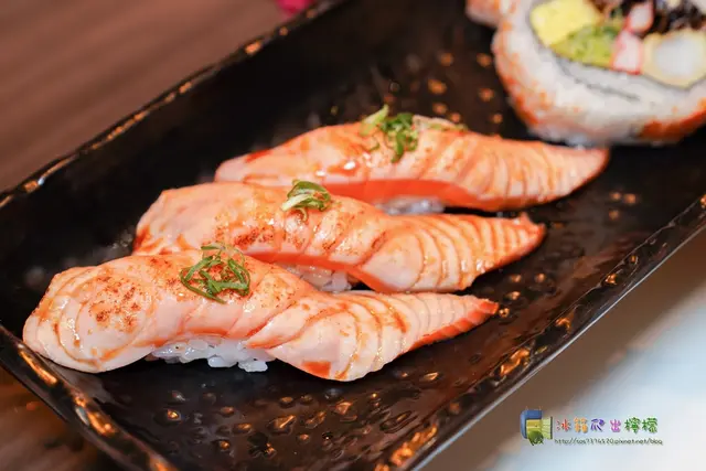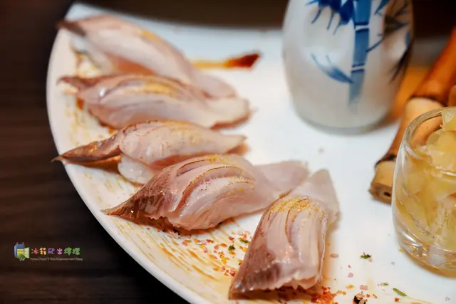 檸檬第一個先下手的是炙燒鮭魚握壽司,因為鮭魚在經過炙燒後,油脂的甜香氣會被逼出來,加上表層的炙燒香與醬香,豐富味蕾感受。