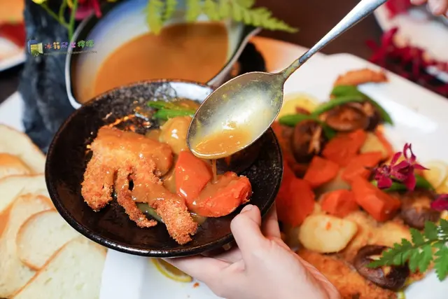 這道料理沒有硬性規定的吃法,想直接吃或搭配咖哩醬汁吃都行。