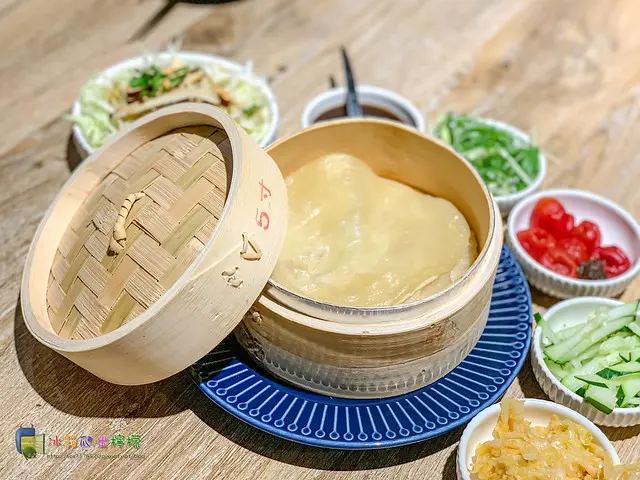▲餅皮是帶有厚度的手工餅皮,口感Q軟又富有麵香,加上甜麵醬、小黃瓜、片鴨...等包裹一同食用,餅皮的Q軟、小黃瓜的清脆、烤鴨的肉香、甜麵醬的甘甜...等,在口腔內富有層次的堆疊變化,真是令人大呼滿足
