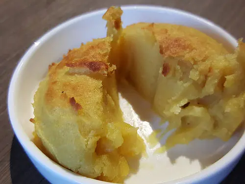 奶油地瓜泥-店家將奶油地瓜泥擺放至前菜部分而非甜點,用意是為了讓空腹的顧客,也能來點甜食墊墊胃,雖每桌只提供這麼一小球,不過檸檬覺得大家一起分著吃這個地瓜,分量可說超級剛好,若是一次給太多,後面也許就吃不下燒肉了(奶油地瓜泥口感細緻綿密,甜度宜人,非常好吃)