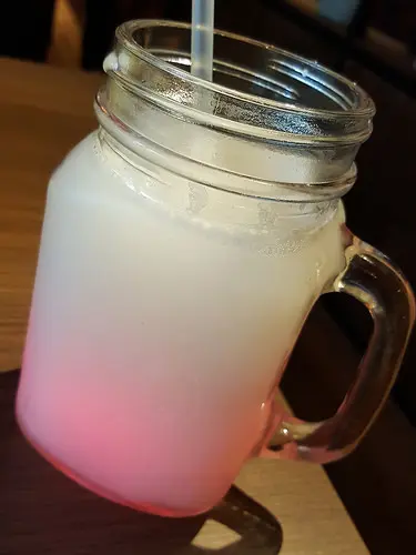 燒肉同話獨創的冰沙飲品,將汽水與啤酒倒扣在冰沙裏頭,卻不會讓液體溢出杯外,這景象檸檬還是第一次見到。