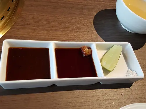 中-水果沾醬:搭配燒肉一同食用(雖說是水果沾醬,但吃不太出有甚麼水果味,感覺比較像是和風醬汁加上生蒜泥)