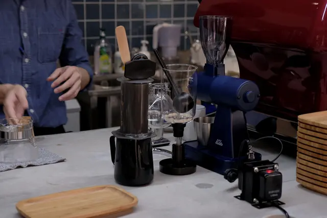 上頭是各式品牌咖啡沖煮器具,在空間裡顯得相當醒目。