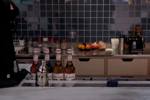 是裡頭偌大的咖啡櫃台,就位於入門室內的正中央,