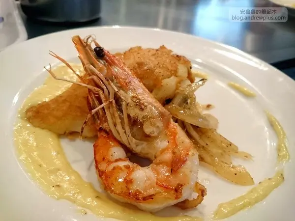 霸王蝦佐鮮魚 - 大草蝦越來越貴了,這麼一大條蝦子和魚片,物超所值囉!