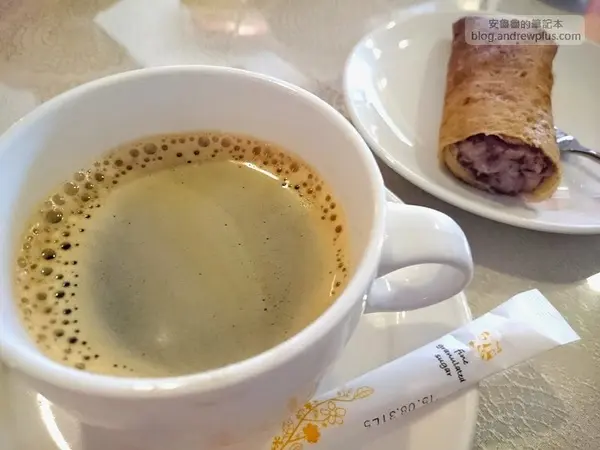 咖啡普普,芋泥蛋捲不會太甜,搭配起來就也是還好!