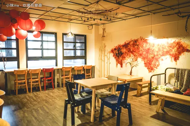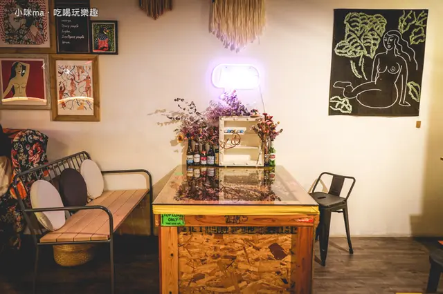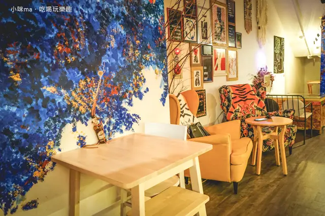 店內的一點一滴都是老闆親手打造出來,搶眼的色系mix原木家具,緩解了衝突的氛圍