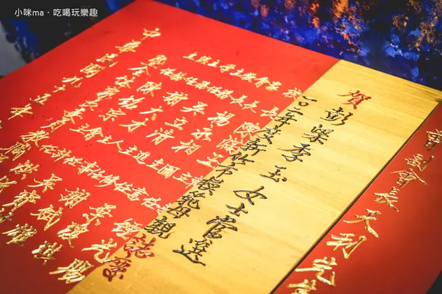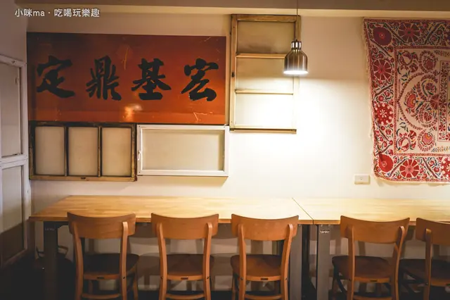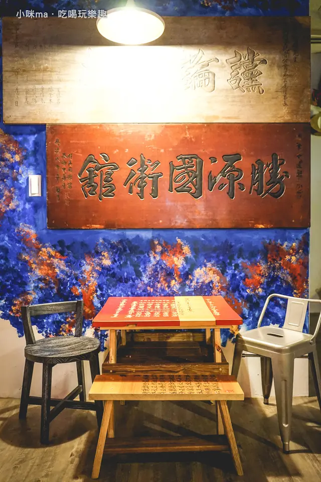 店內最夯的就是這個三人座位,國術館的匾額完整變成牆上的裝潢,桌子、椅子也是用匾額打造