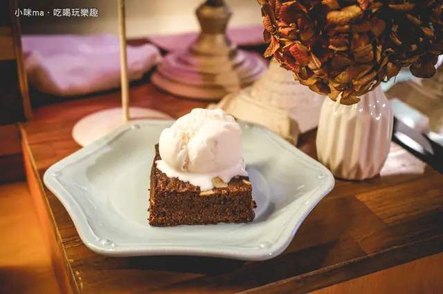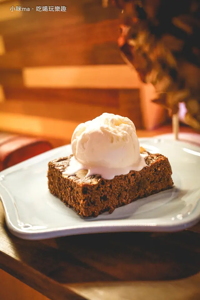 微熱的布朗尼口感鬆軟苦甜,搭配一球香草冰淇淋,兩種甜交疊出層次