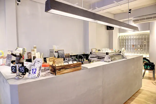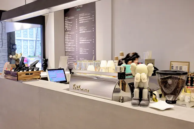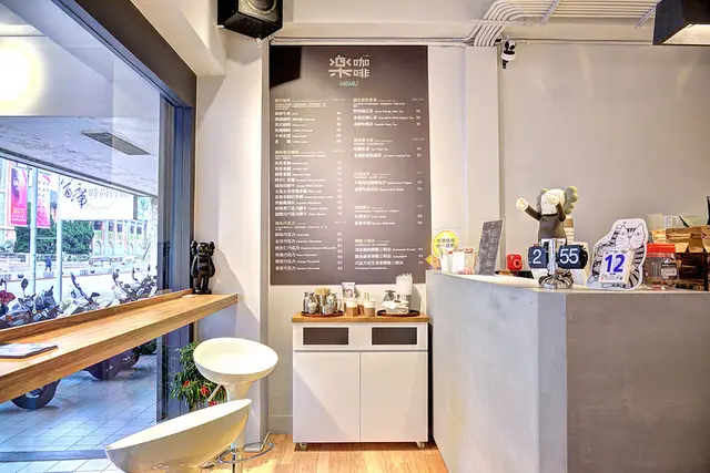 看到了這間新開幕有著清新白底灰色的咖啡館。