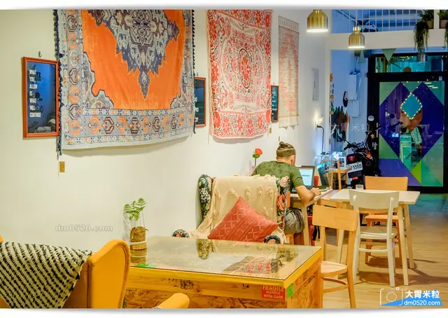 牆面則是掛上編織毯,老闆笑說這裡風格越來越多元,