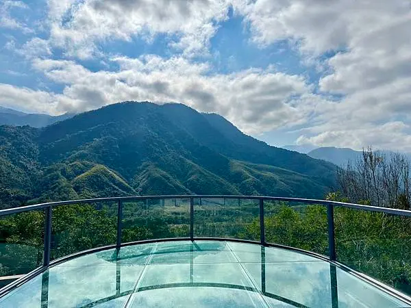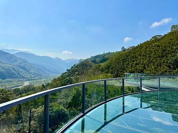 有透明玻璃景觀步道可看翠綠山巒景緻,
