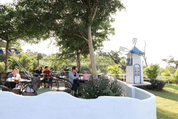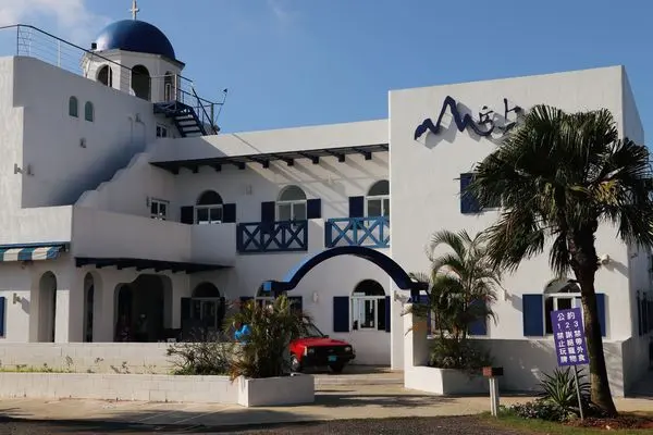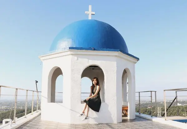 山丘上景觀咖啡館,店家的建築以希臘風格為主,跟希臘愛情海的小島聖托里尼相似。
