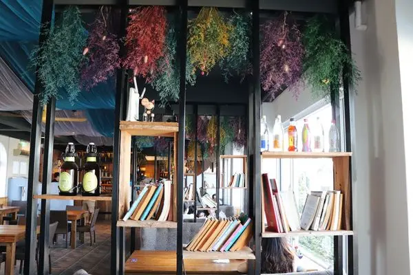 店內布置了許多乾燥花跟布幔非常浪漫